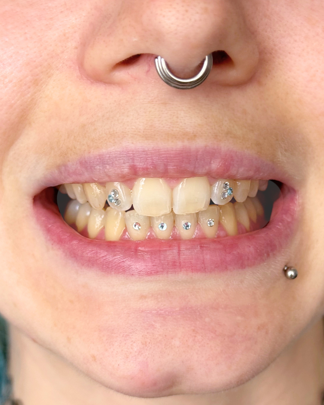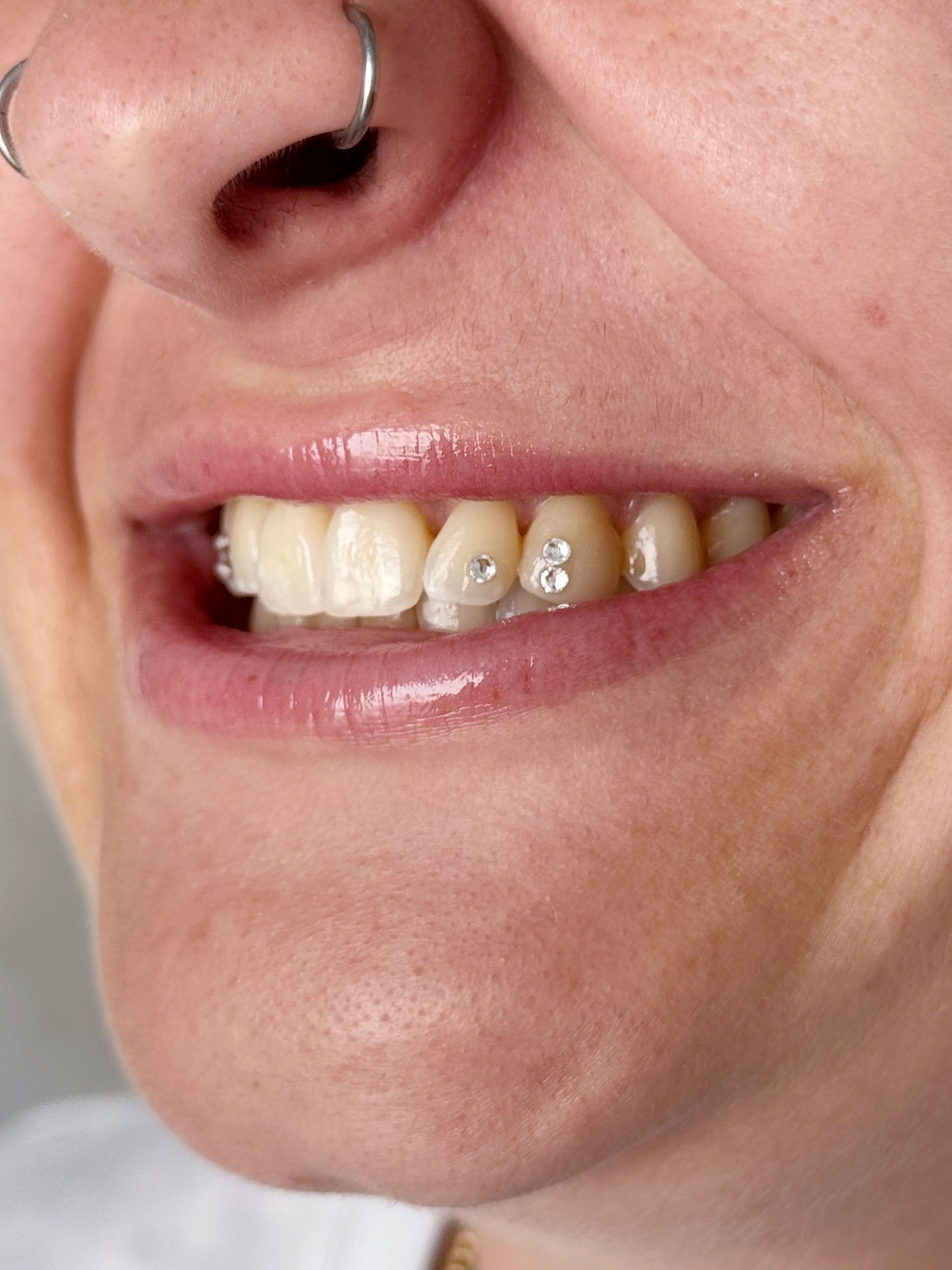 Le gemme dentali sono piccole applicazioni di cristalli di alta qualità applicati in modo sicuro e delicato sulla superficie del dente, senza perforazioni né danni allo smalto.